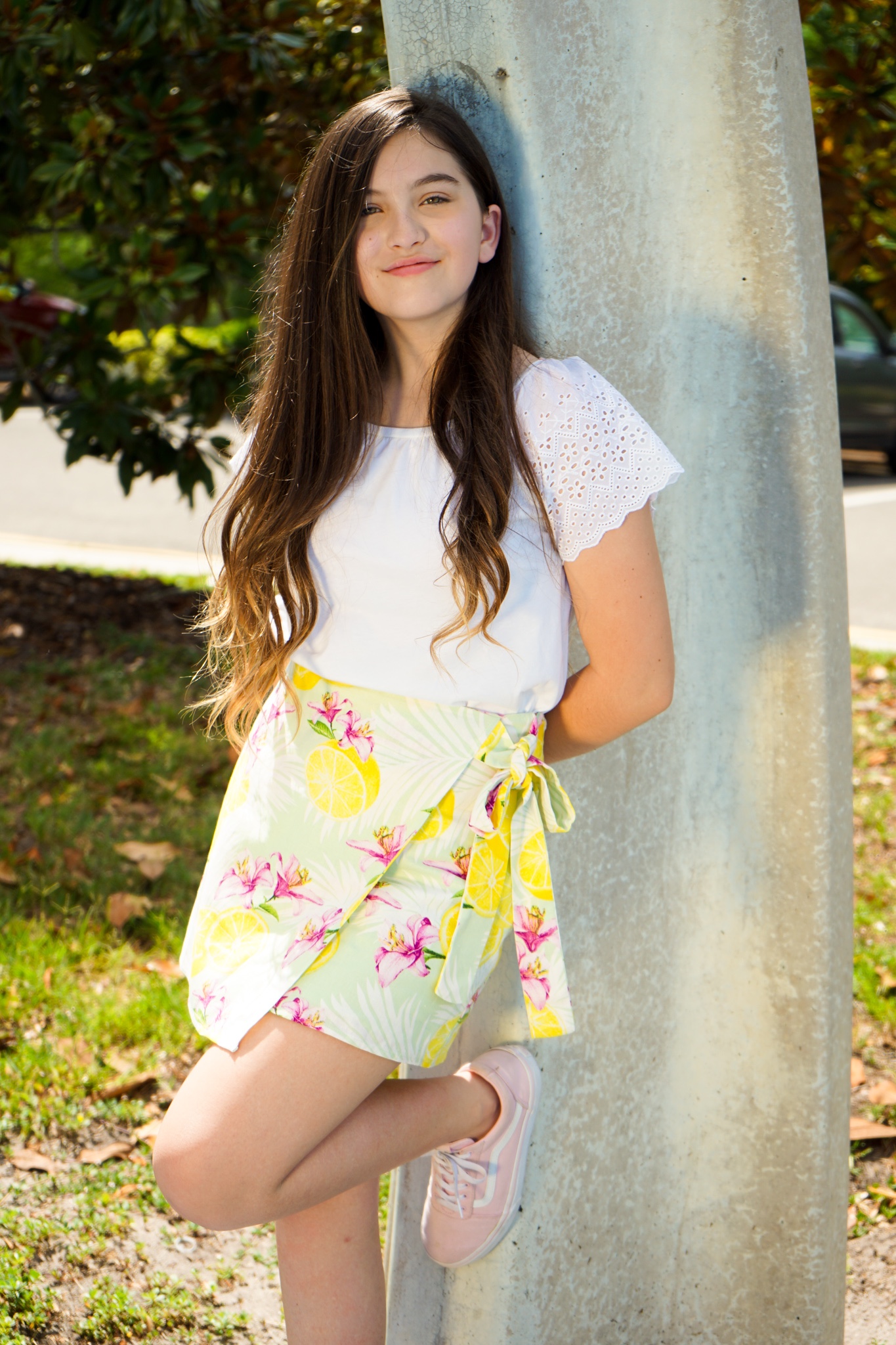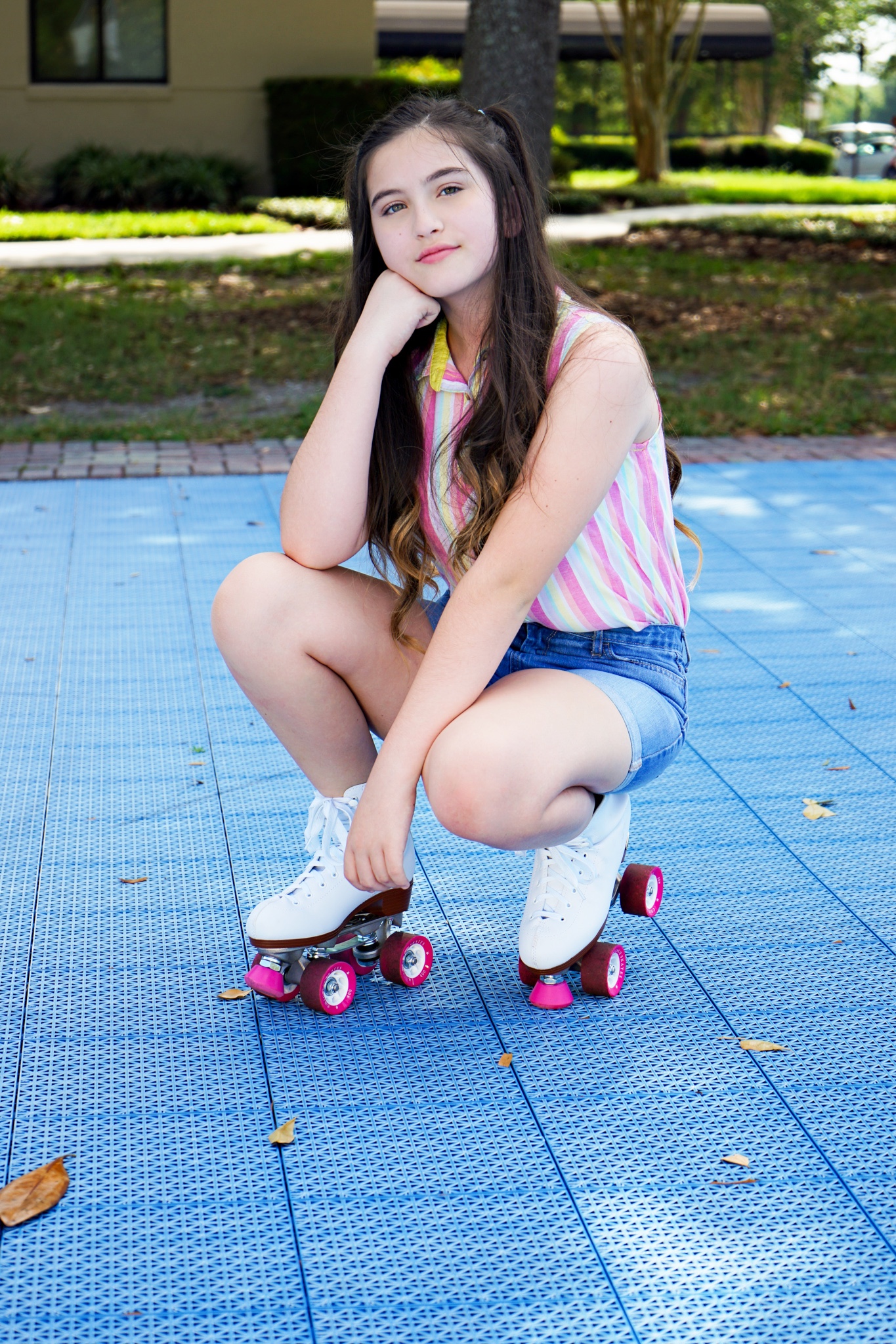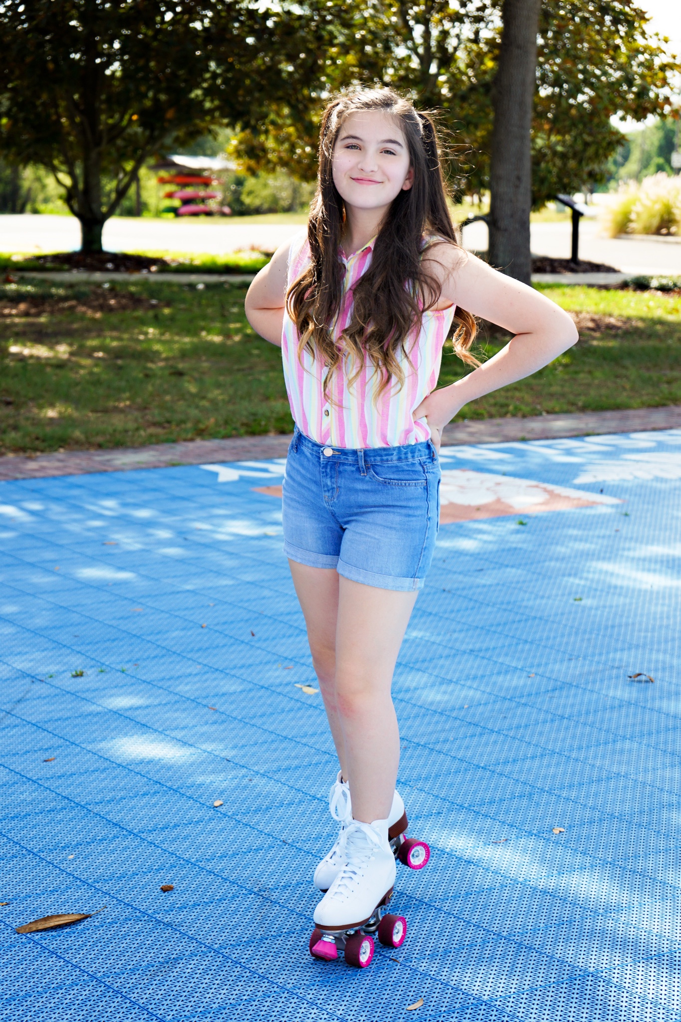 On the day of the photoshoot, I got ready and hoped in the car, on the way there I listened to musicals. When I got there the first outfit I did was this bright shirt and a pair of skates, those pictures came out best because you could tell I was having fun on the skates.